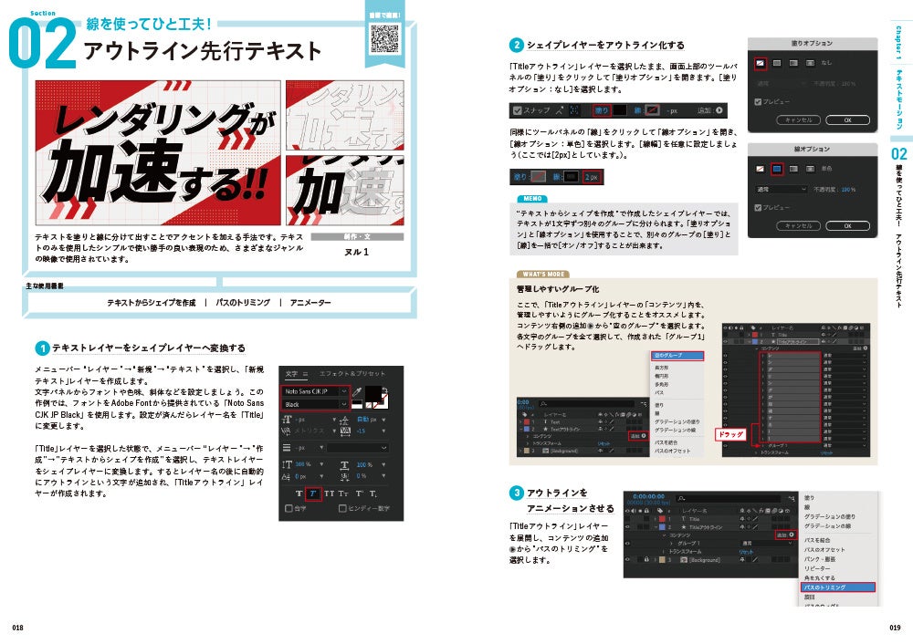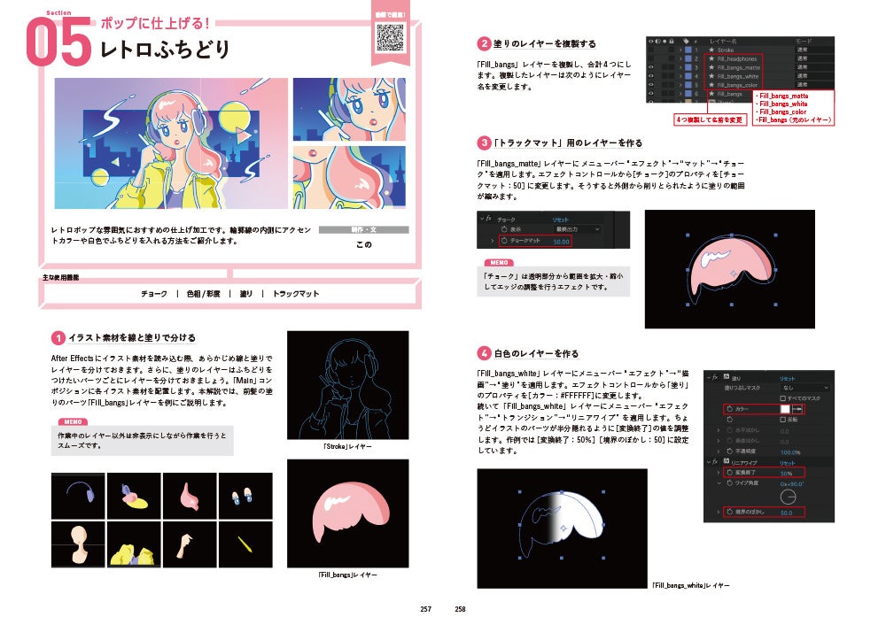 全作例のAfter Effectsプロジェクトファイルがダウンロードできるので、実際に触って学習していただけるようになっています。さらに各ファイルには本書で紹介しきれなかったテクニックも盛り込まれており、全作例のプレビュー動画も閲覧できるので、ぜひ紐解いてご自身のものにしてください。