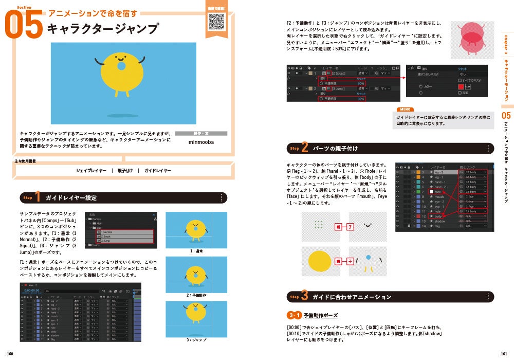 いま国内の「モーションデザイン」の最先端で活躍する5人のクリエイター〈この、サプライズ栄作、ナカドウガ、ヌル1、minmooba〉が、長年デザインワークを手掛けてきた経験から得た、誰もが作りたくなるようなデザイン性/利便性/再現性の高い55本の作例とその作り方・テクニックや演出方法を、一つひとつていねいに解説しています。