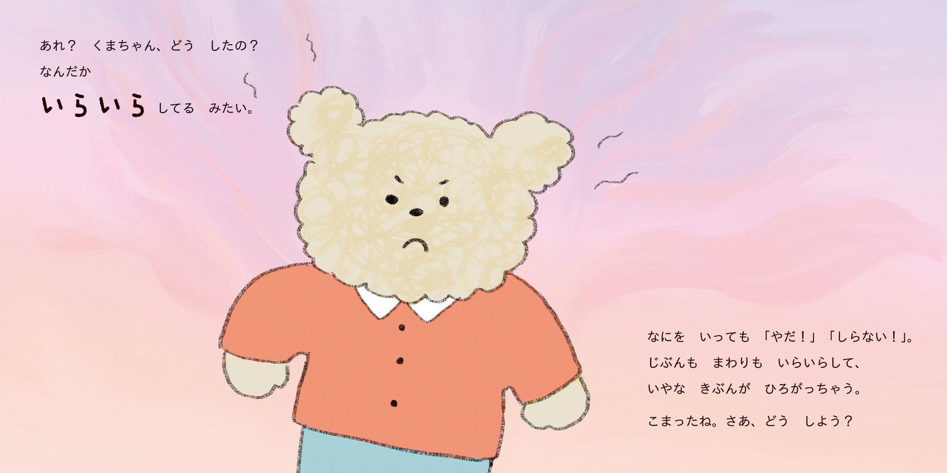 普段できない「気持ち」について会話をするきっかけになりました。嬉しい気持ちや、イライラしたときどうするのか、本を読みながら落ち着いて子どもの考えを聞くこともできました。息子は小学校低学年ですが、気持ちを表現するのが下手なのか、よく泣いたり怒ったりしています。イライラするとき、自分の力でどう解消するのかこの絵本をきっかけに考えてほしいと思いました。(4歳、8歳の保護者)