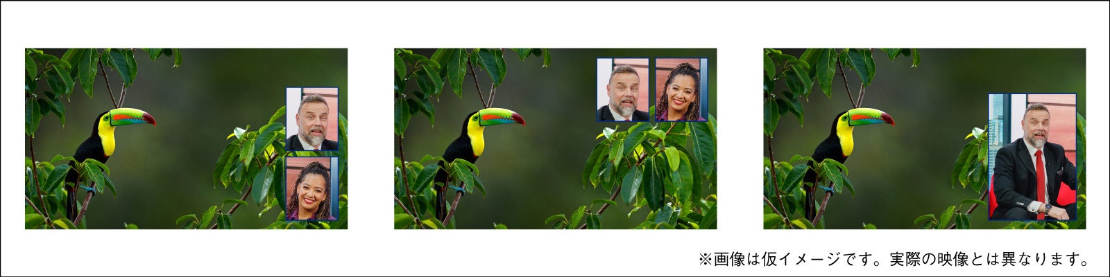 さらに、バージョン2ではライブ映像制作をより一層効率化する自動顔PinP処理「AI Face Crop」も搭載。AI顔検出技術を活用して任意の人物を認識・追尾し、顔PinPの自動挿入を可能にします。これにより、対象ごとにカメラを準備する必要がなくなり、カメラ1台で誰でも簡単に複数人の顔PinPを表示させることが可能。放送業界のみならず、企業イベントや講義配信など様々なシーンで円滑な映像制作をサポートします。