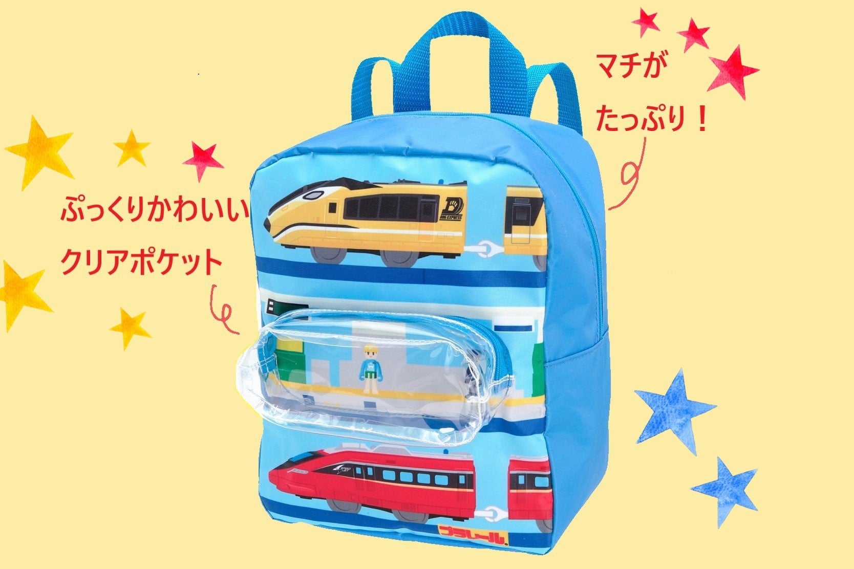 プラレールといっしょにお出かけしたくなる、クリアポケットつきのリュックがすごい! クリアポケットの内側は、駅のホームのデザインになっていて、プラレールのキャラクター、てっちゃんと駅員さんがかわいいデザイン☆ リュックのサイズは、タテ250×ヨコ200×マチ120mmと、マチもたっぷりです。ぷっくりクリアポケットには宝物を入れたくなる、スペシャルなお出かけリュックです。(※リュックはおおよそのサイズです)