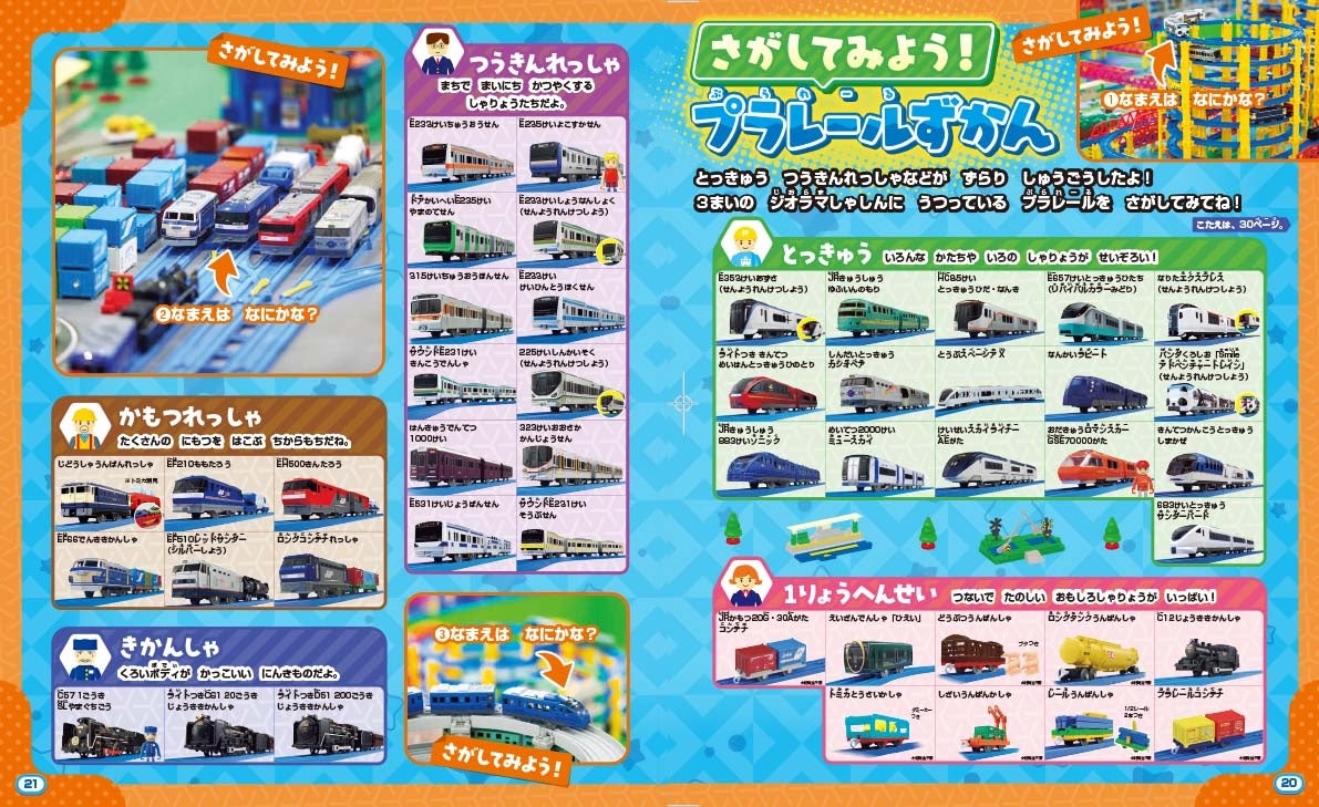 みんな大好きプラレールの車両ずかんでは、E8系新幹線つばさ、E5系新幹線はやぶさ、新幹線N700S、923形ドクターイエローなど人気新幹線がい~っぱい! このほか、注目のレイアウトセット紹介、プラレール鉄道特集、特急・通勤列車ずかん、ふみきり紹介、プラレールグッズカタログなど、親子でプラレールを思い切り楽しめます☆ お出かけが増えるこれからの季節に、プラレールで新幹線・電車の名前を覚えるのもおすすめです!