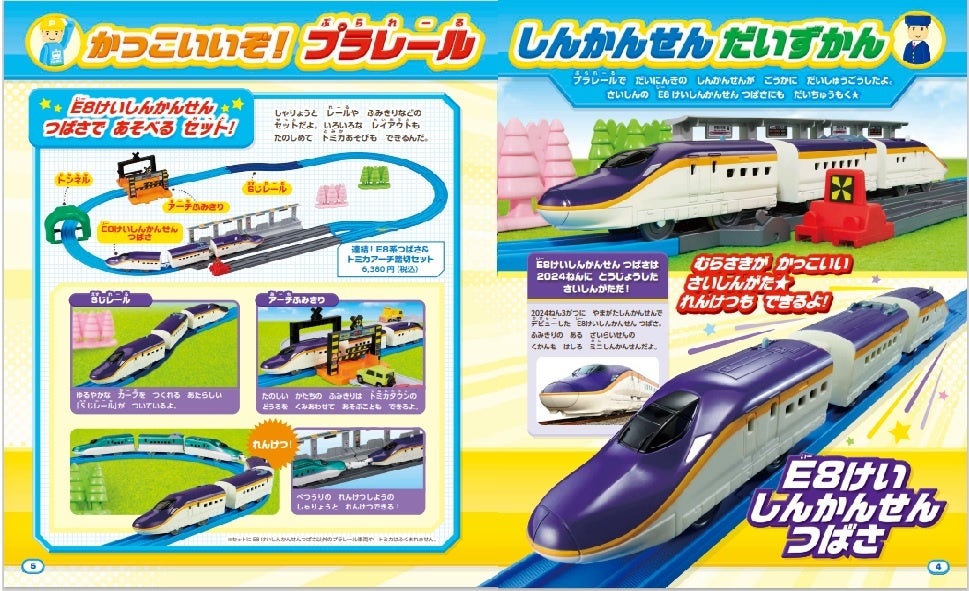 2024年に65周年をむかえた、大人気の鉄道玩具「プラレール」! 各地でイベントが行われたり、春には新商品の「連結!E8系つばさ&トミカアーチ踏切セット」が登場したりと大盛り上がり! そんな子どもたち、親子に人気の「プラレール」65周年を記念した、豪華付録つきブックが登場しました。