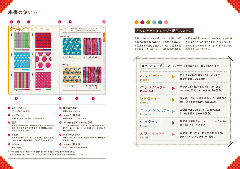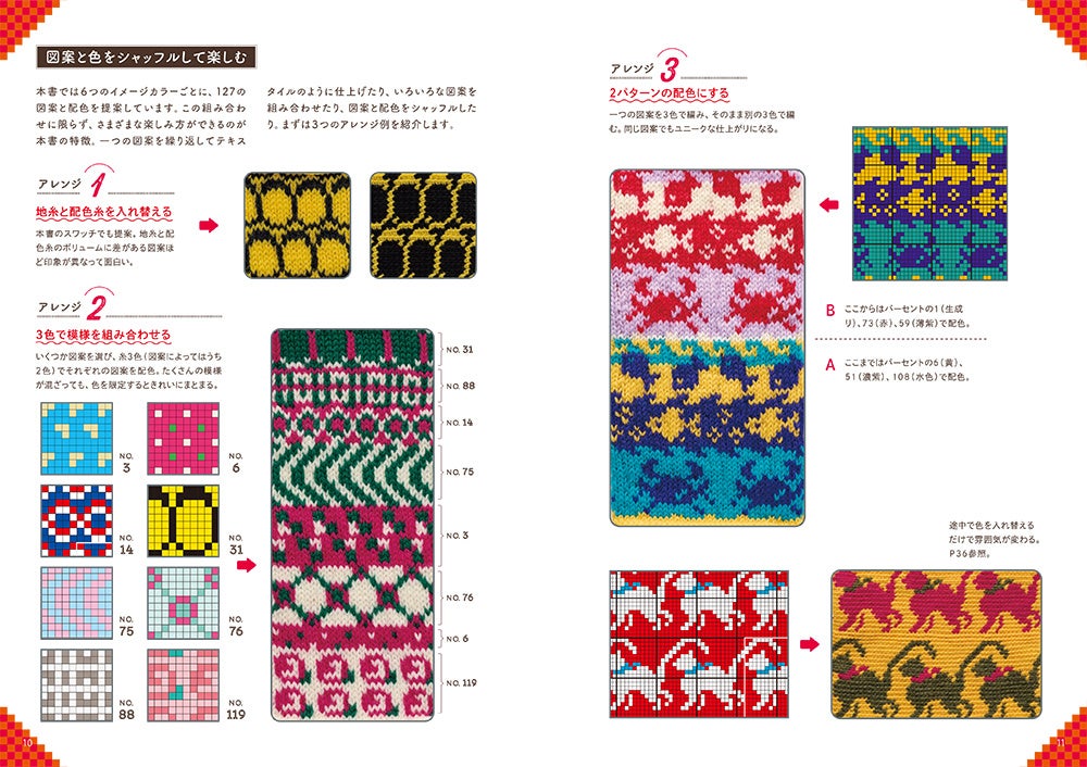 もうひとつの特徴が、掲載の図案と配色は、別々に組み合わせられること。