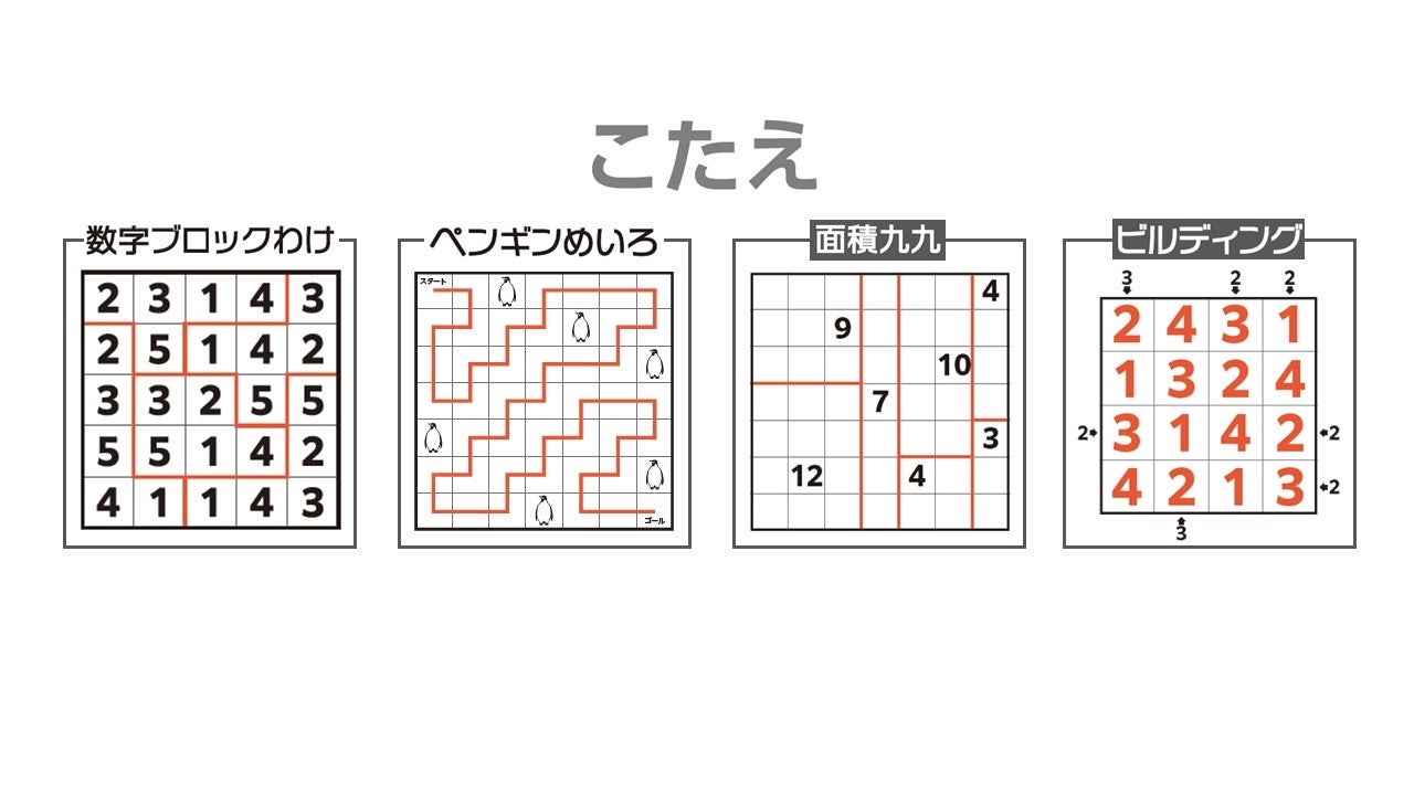 ■「数字ブロックわけ」「ペンギンめいろ」「面積九九」「ビルディング」は、どんなパズル?