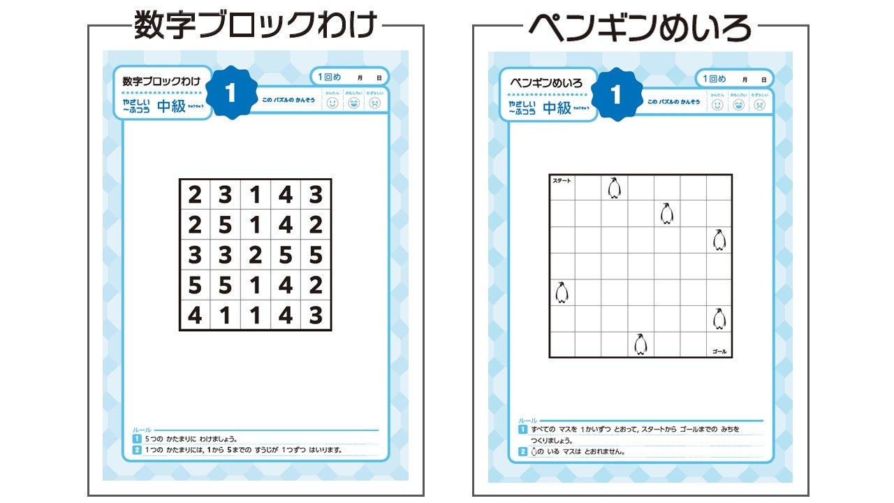 今回は、「このパズルをもっとたくさん解きたい!」という声に応えて、大好評の『入門シリーズ』で特に人気の「数字ブロックわけ」「ペンギンめいろ」「面積九九」「ビルディング」の4種類のパズルを、それぞれ1冊にまとめた新刊が発売されます。