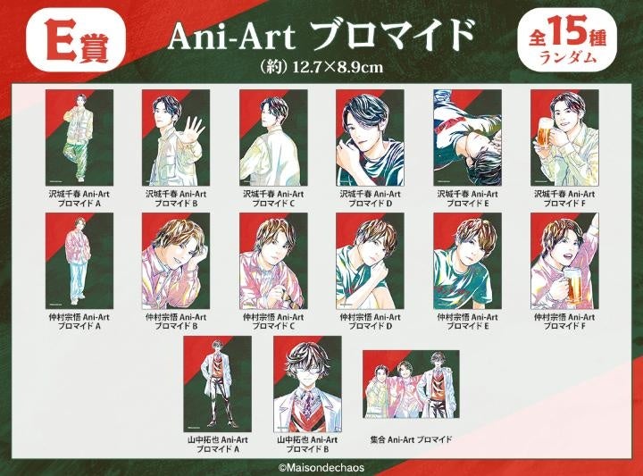 漫画・アニメのオリジナルグッズを販売する株式会社アルマビアンカ(本社:東京都中野区、代表取締役:坂井智成)は、自社オンラインくじサービス「DRAW!DRAW! -ドロー!ドロー!-」にて4月17日(水)より「沢城千春 仲村宗悟 山中拓也のメゾン・ド・カオス」Ani-Art オンラインくじを販売いたします!