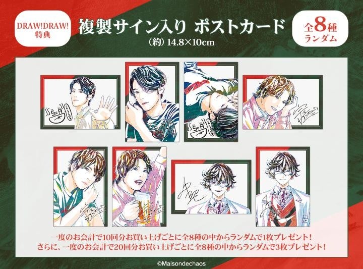 一度のお会計で10回分ご購入ごとに複製サイン入り ポストカード(全8種)の中からランダムで1枚、20回分ご購入ごとにランダムで3枚プレゼント!