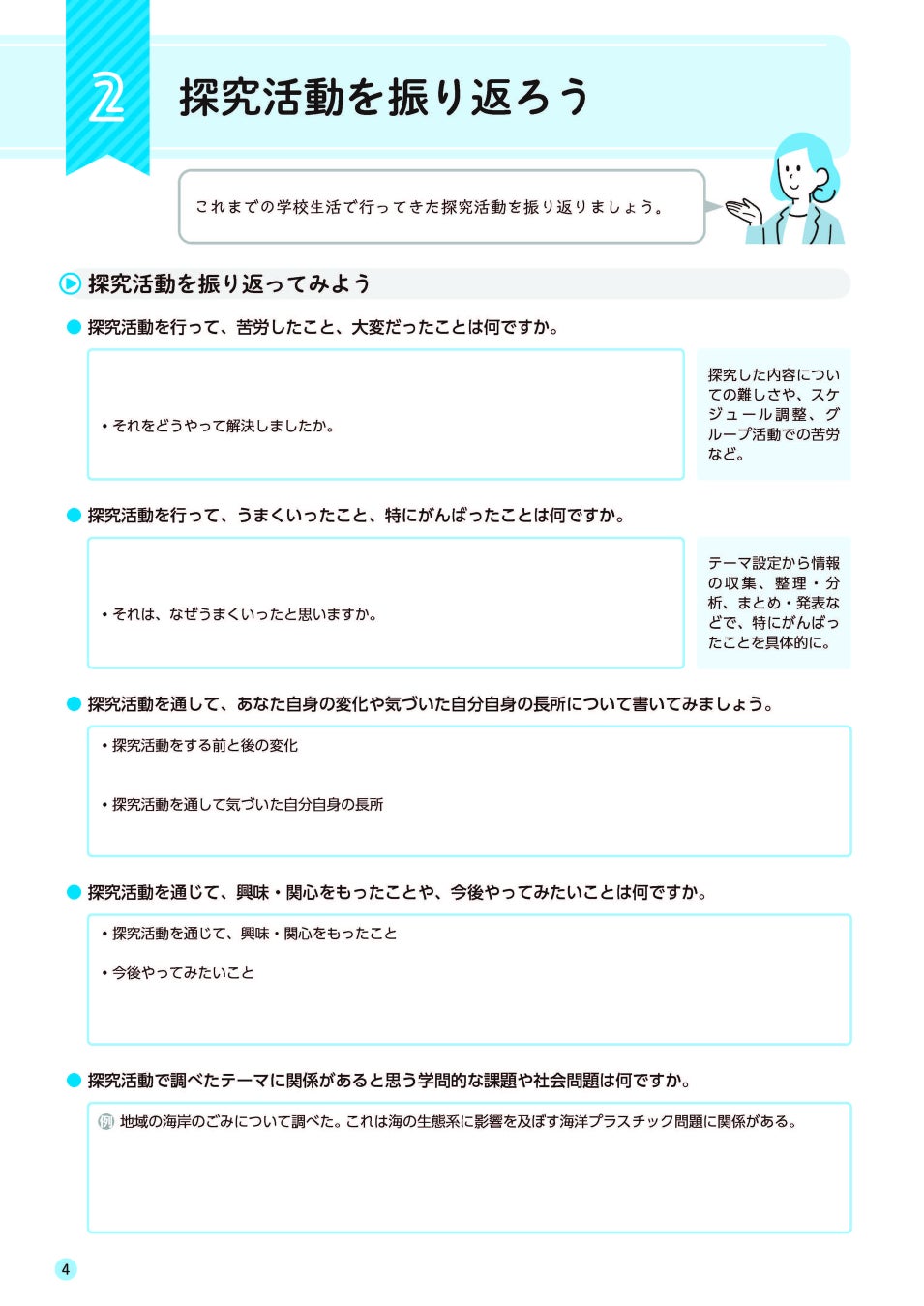 ・探究活動で学んだことを進路・進学につなげる振り返りとして