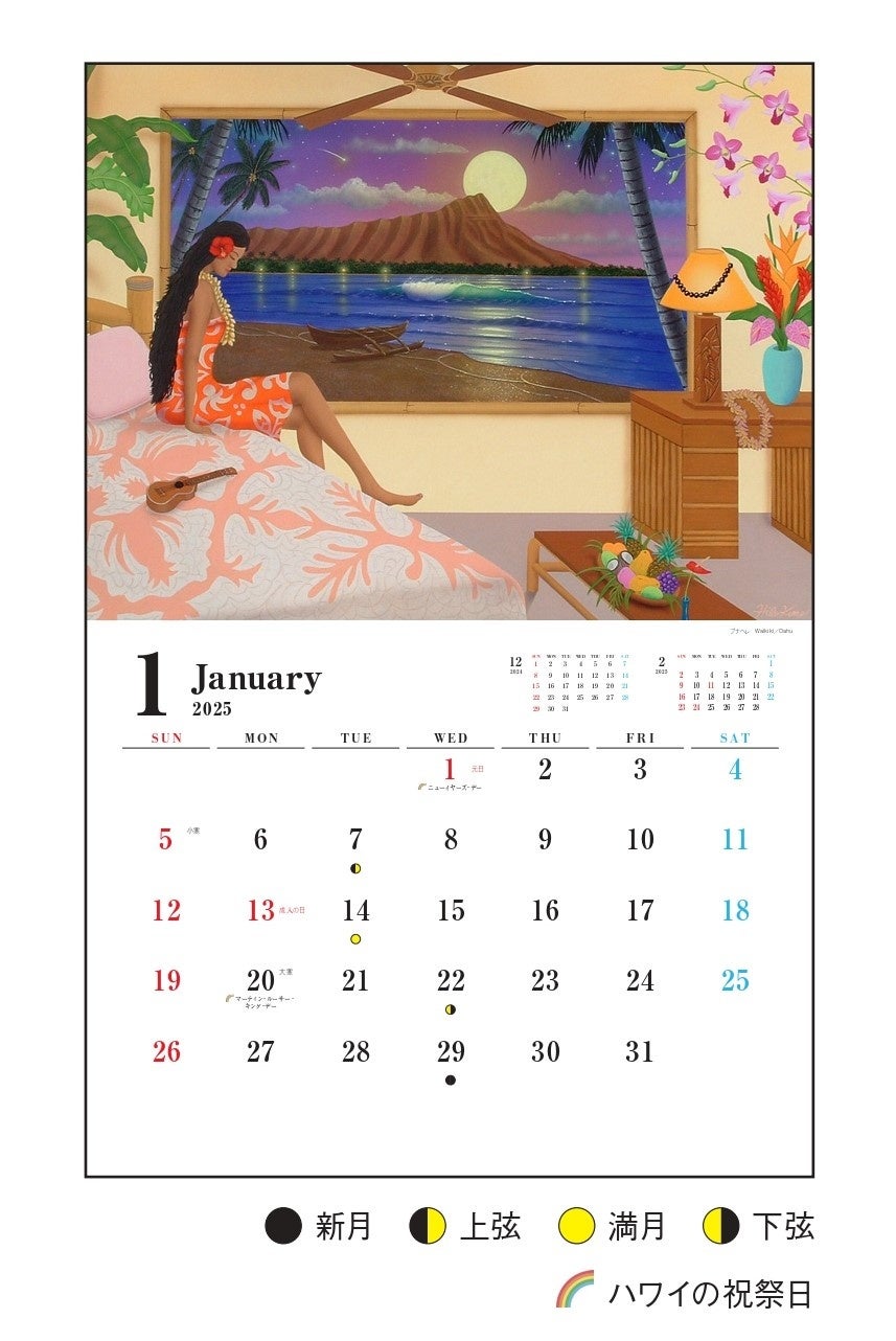 お部屋にハワイの風が吹く 癒しのタッチで描き出す楽園の風景『HILO KUME ハワイアンアート』(イカロスカレンダー2025)発売