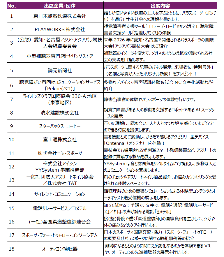 ・ 企業・団体ブース(パラスポーツ体験やUC技術の紹介など)