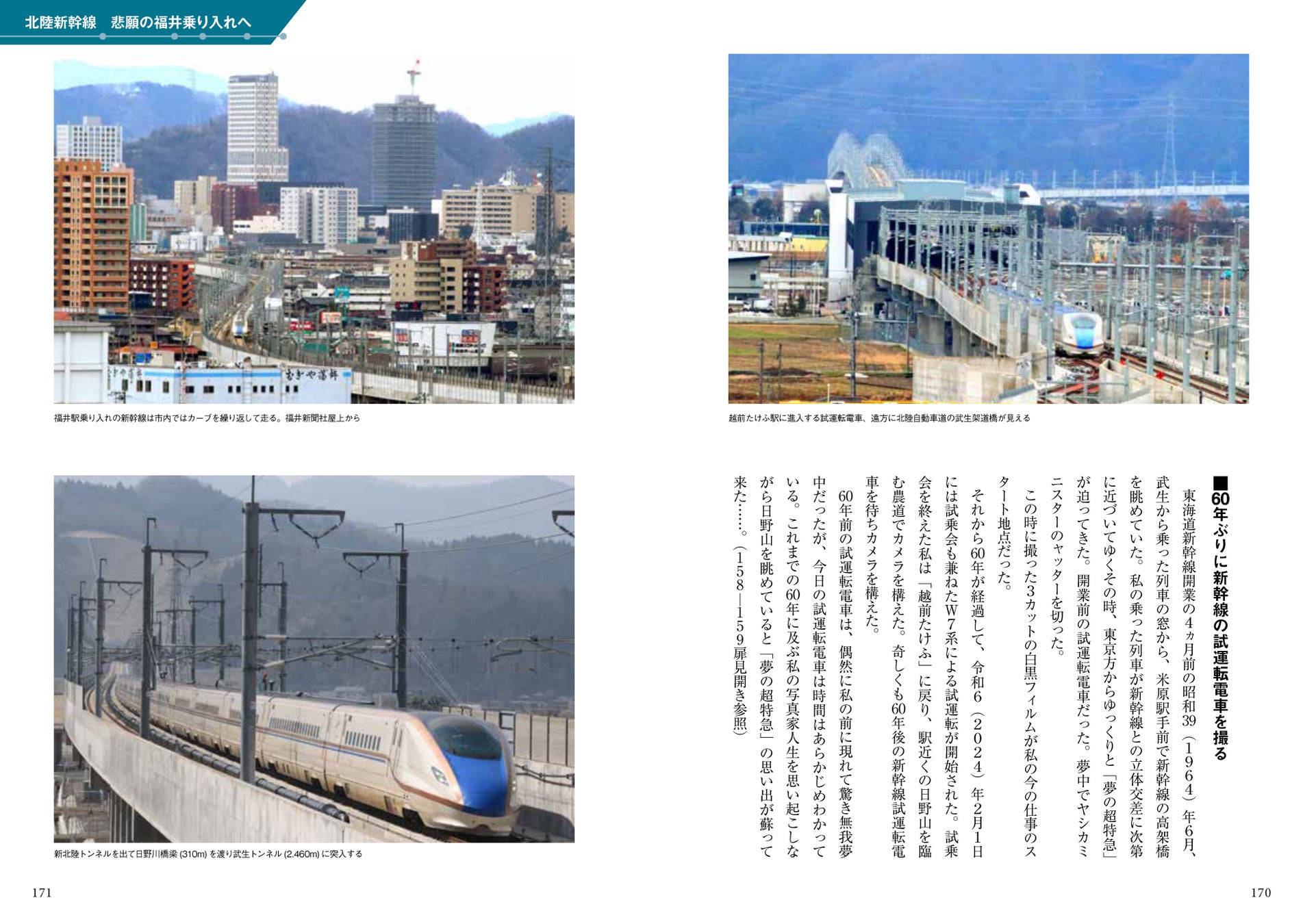 1964年6月、鉄道写真家・南 正時は17歳のとき、米原付近で偶然目にした新幹線試運転電車を撮影しました。それから60年後の2024年、故郷「越前たけふ」で北陸新幹線の試運転列車の撮影に臨むこととなります。まさに、南 正時の鉄道写真家としての歩みは、新幹線とともにあった60年でもあります。
