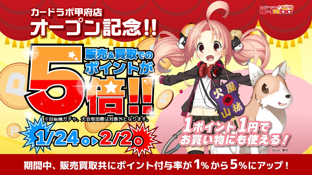 【山梨県】トレカショップ『カードラボ甲府店』が1月24日(金)10:00グランドオープン!5倍ポイント還元などの豪華キャンペーンを実施~