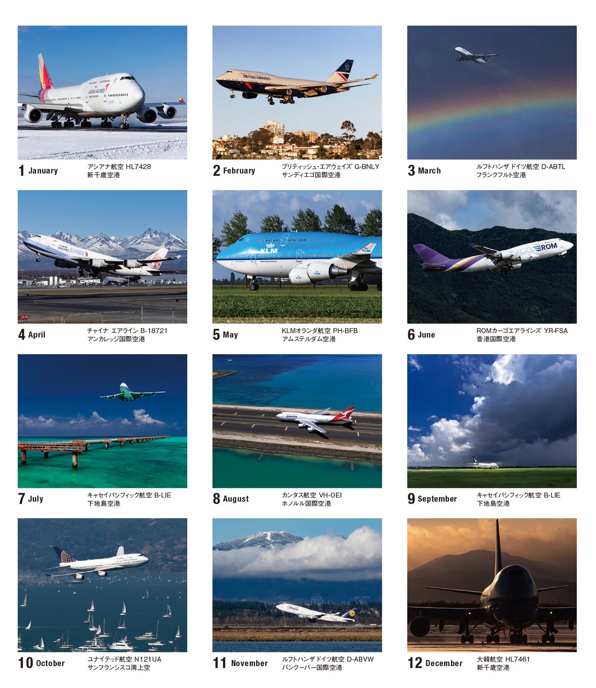 ジャンボジェット機の完成系として登場し、ヒコーキファンの間でも極めて人気の高いボーイング747-400、通称ダッシュ400。高いレベルの環境性能や経済性が求められる時代の中で、経年機となったダッシュ400は退役が進み、2024年3月には主要エアラインの中で残っていた数少ないオペレーターだった韓国のアシアナ航空でも運航を終了しました。本当に乗ることが難しい機体となってしまったいまだからこそ、一年にわたってダッシュ400と寄り添えるカレンダーには価値があります。