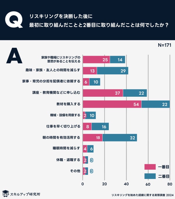 リスキリング時に最初に取り組むのは「教材購入」「講座申し込み」