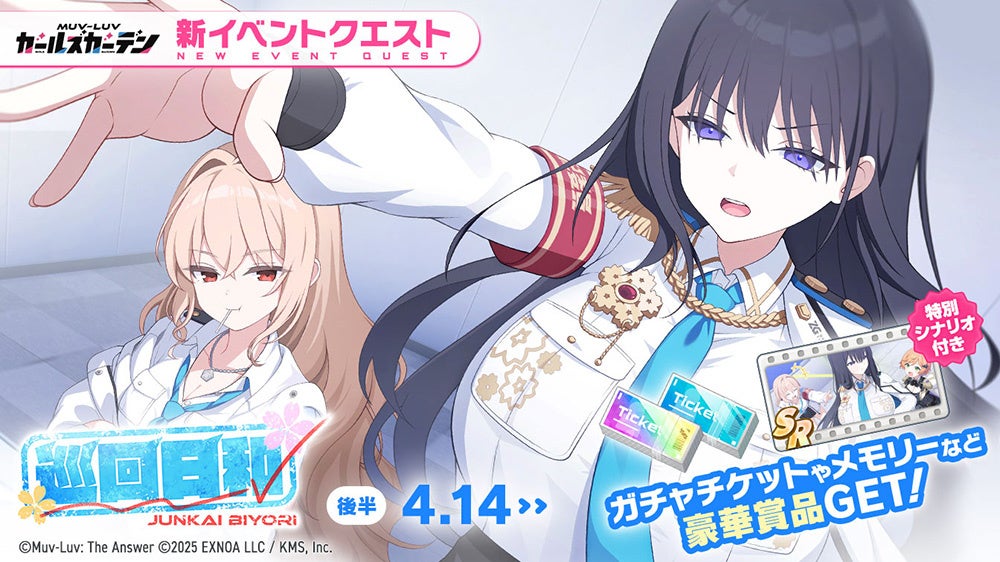合同会社EXNOA(本社:東京都港区、CEO:東條 寛、URL:https://games.dmm.com/)と株式会社KMS(本社:東京都品川区、代表:梶原 健太郎、URL:http://kms3.com/)が贈るマブラヴ最新作『マブラヴ ガールズガーデン』(以下、マブガル)が、風紀委員の新イベント「巡回日和」後半を開始し、新SSR「大賀 真桜」が登場したことをお知らせいたします。