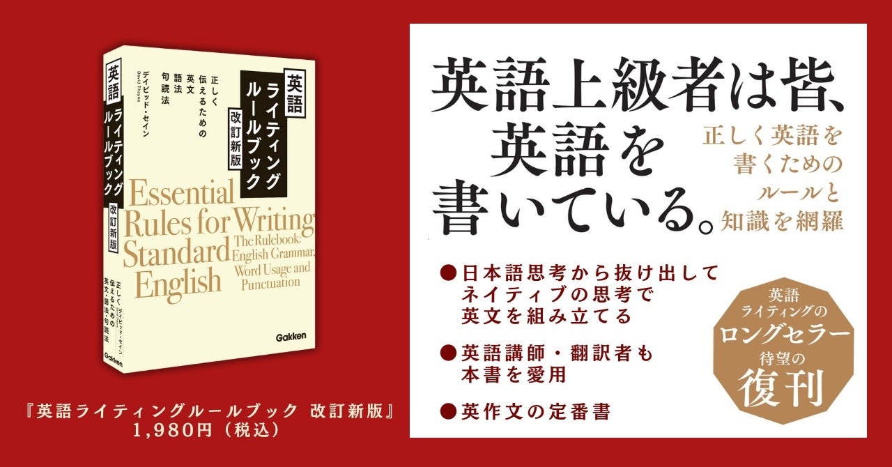 株式会社 学研ホールディングス(東京・品川/代表取締役社長:宮原博昭)のグループ会社、株式会社 Gakken(東京・品川/代表取締役社長:五郎丸徹)は、2024年4月25日(木)に『英語ライティングルールブック 改訂新版』を発売いたしました。