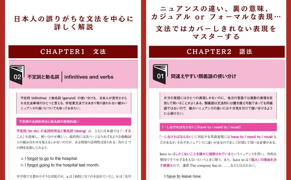 文法ではカバーしきれない、ニュアンスの違い、裏の意味、文法的には正しいものの実際には用いられない表現をおさえる。類義語の使い分けや、端的に伝える表現、回りくどい表現を避ける方法、カジュアルorフォーマルな表現など。