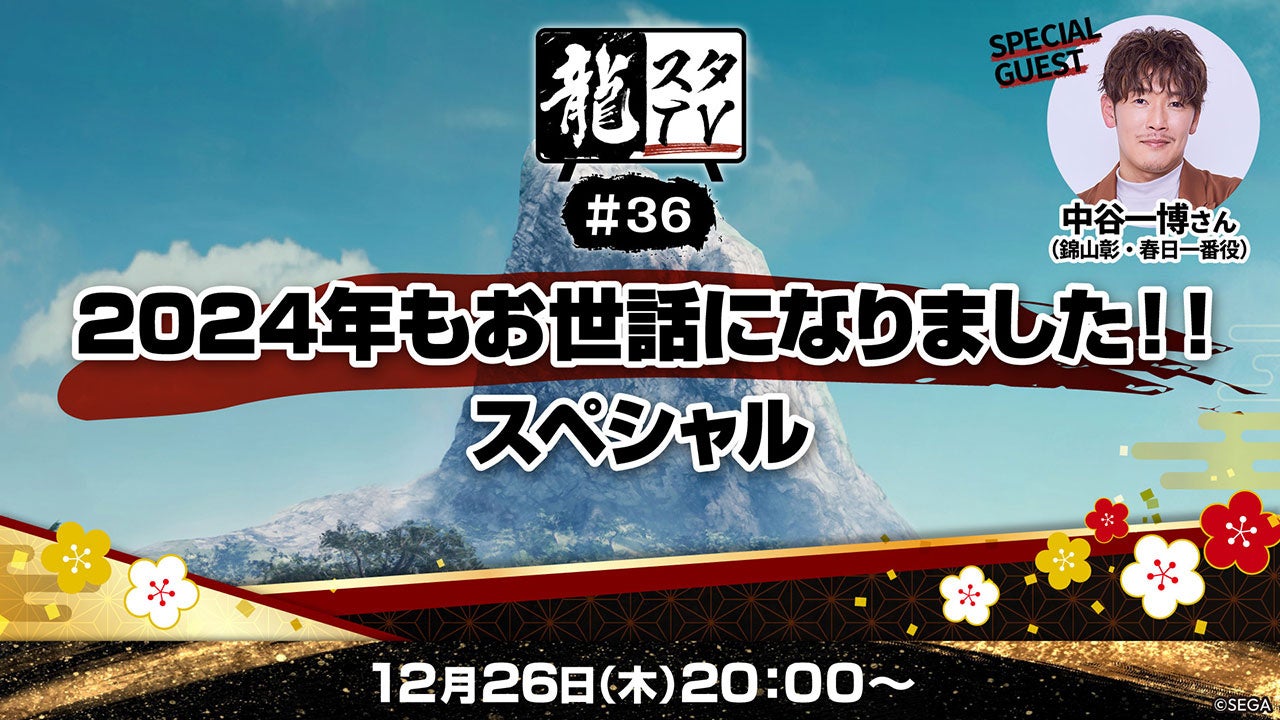 株式会社セガは、「龍が如く」シリーズを手掛ける「龍が如くスタジオ」の最新情報をお伝えする番組「龍スタTV」の第36回を、2024年12月26日(木)20:00よりYouTube Live、ニコニコ生放送にて配信することを決定しました。