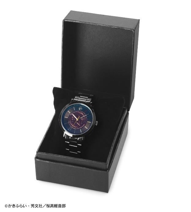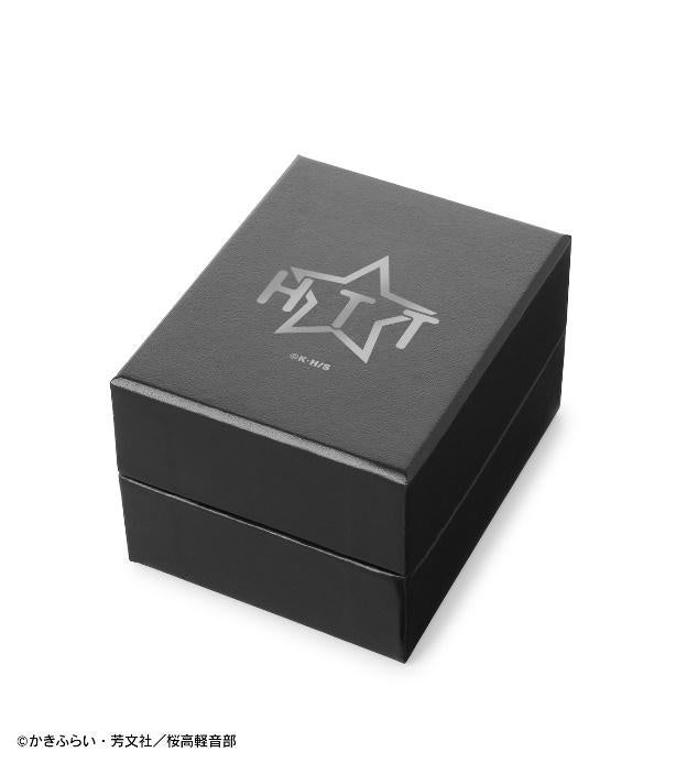 また、文字盤中央には放課後ティータイムのロゴをあしらい、裏蓋にはアイキャッチでお馴染みのカセットを刻印しております。