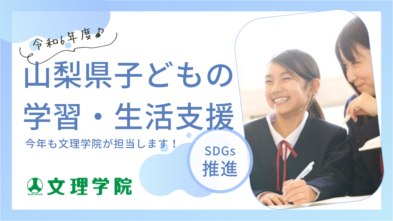 【学習の場を開設】文理学院は、子どもの学習・生活支援の場を山梨県内8町村に開設し、さまざまな課題のある子どもたちを応援します。
