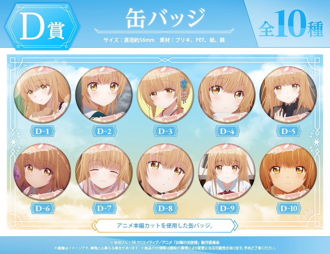 クオリティコンフィデンス株式会社(アニメイトグループ)は、オンラインくじサービス「くじメイト」(アニメイト通販)・「どこプラ」にて、TVアニメ『お隣の天使様にいつの間にか駄目人間にされていた件』オリジナルグッズが手に入る「『お隣の天使様にいつの間にか駄目人間にされていた件』オンラインくじ」を2025年1月31日(金)12時より販売開始しました。