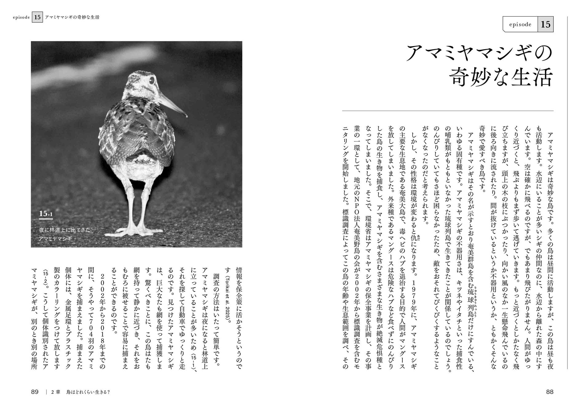 毎年来るツバメは同じツバメか/長生きする鳥たち/小鳥も案外長生きする/蕪島に集まる3万羽のウミネコ/アマミヤマシギの奇妙な生活/絶滅の可能性を評価する
