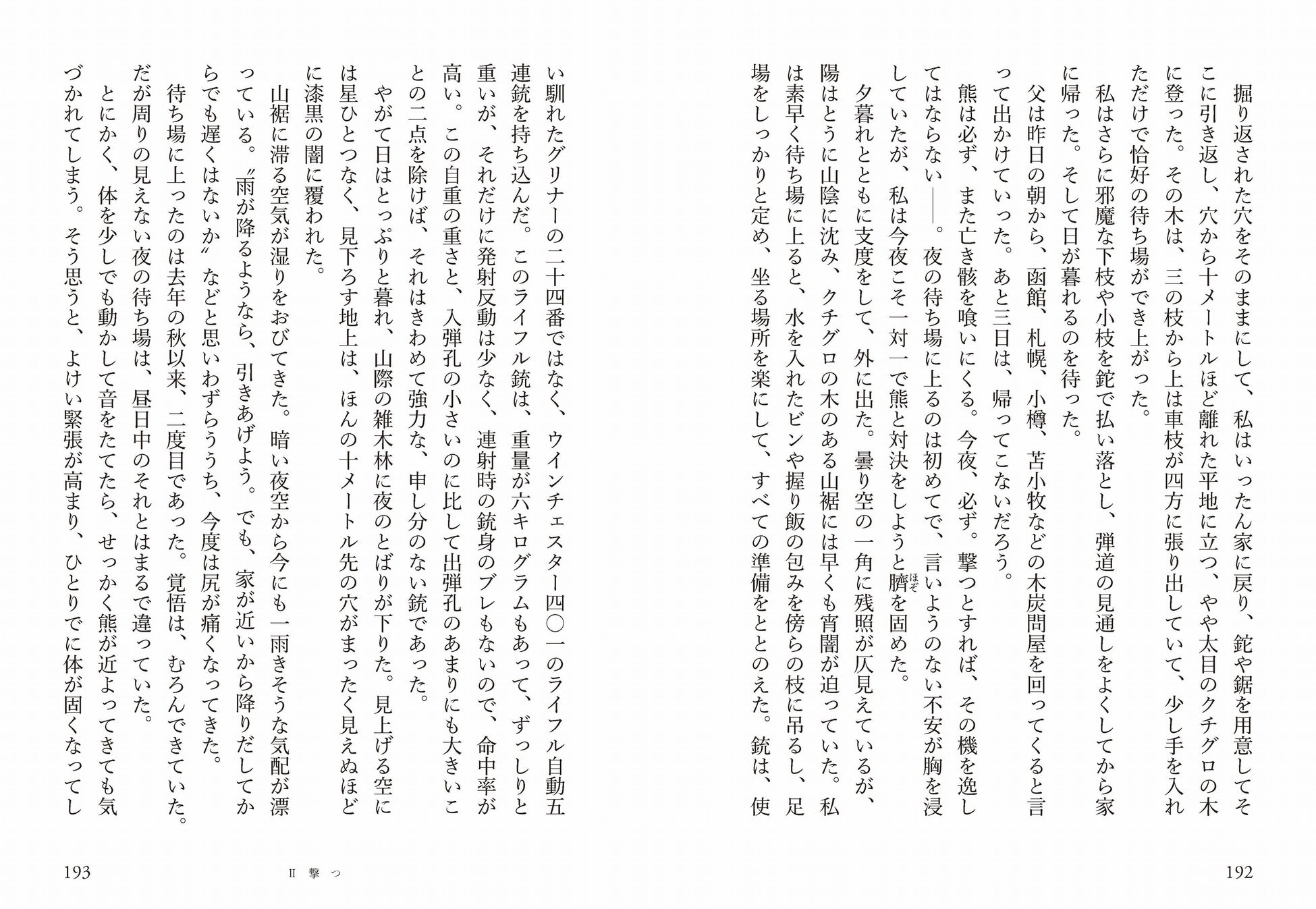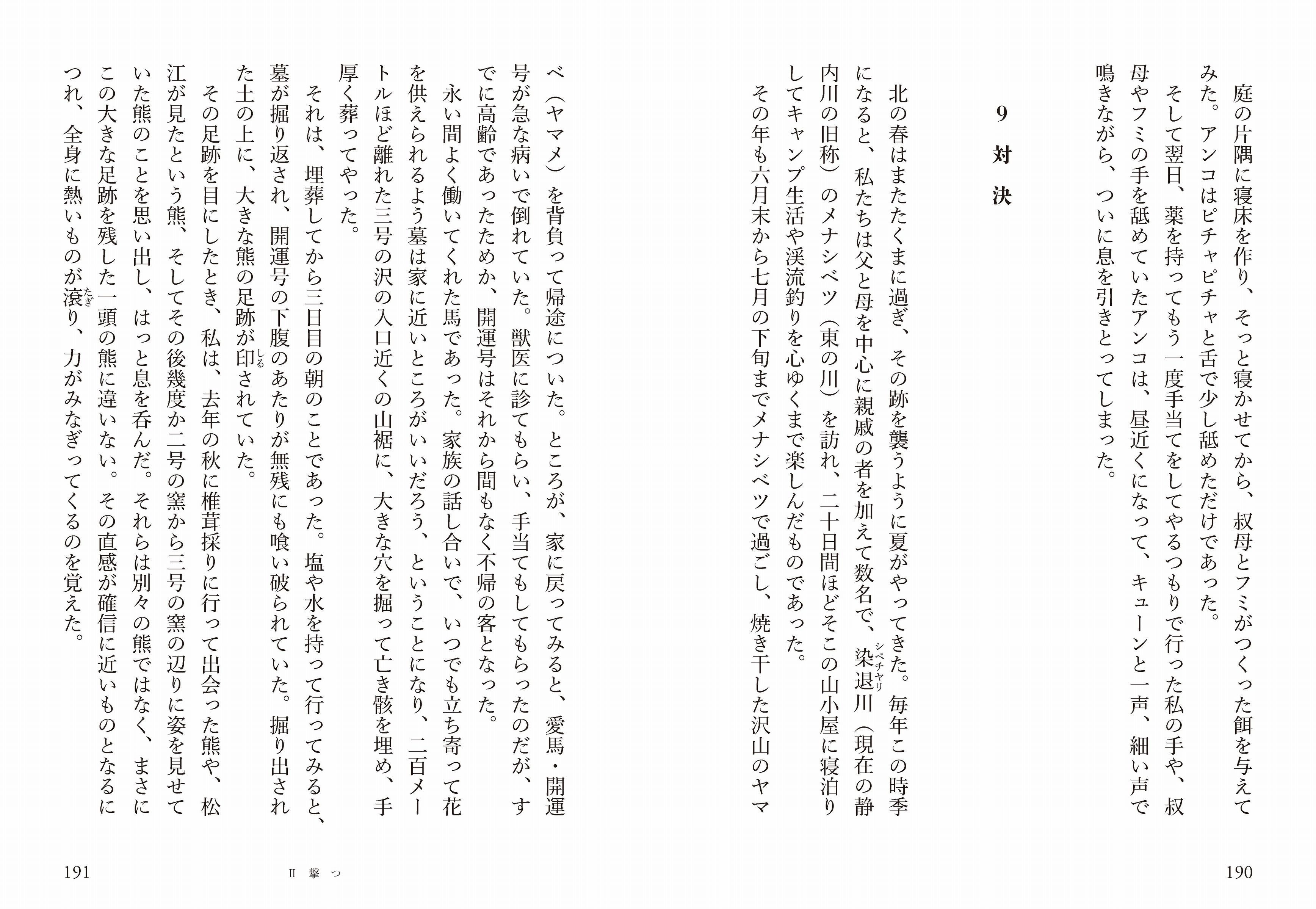 Ⅱ撃つ 少年猟師/待ち伏せ/手負い熊/横取り/追跡/山の神様/窮地脱出/猟犬、帰らず/対決