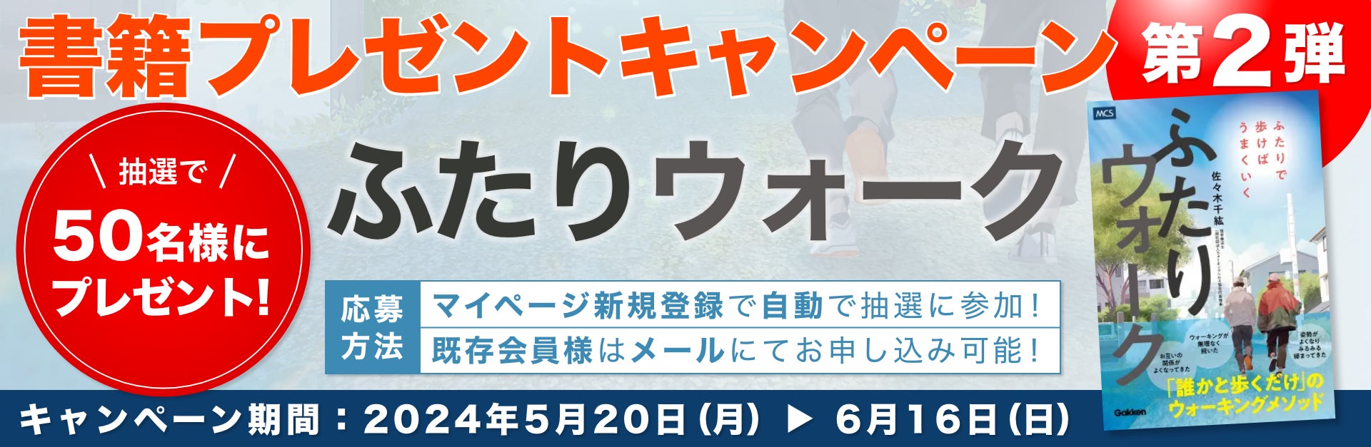 株式会社 学研ホールディングス(東京・品川/代表取締役社長:宮原博昭)のグループ会社、メディカル・ケア・サービス株式会社(埼玉・さいたま市/代表取締役社長:山本教雄)は、家族の介護と健康を支える学研の情報サイト「健達ねっと」にて、2024年5月20日(月)より「書籍プレゼントキャンペーン第2弾」を開始いたしました。