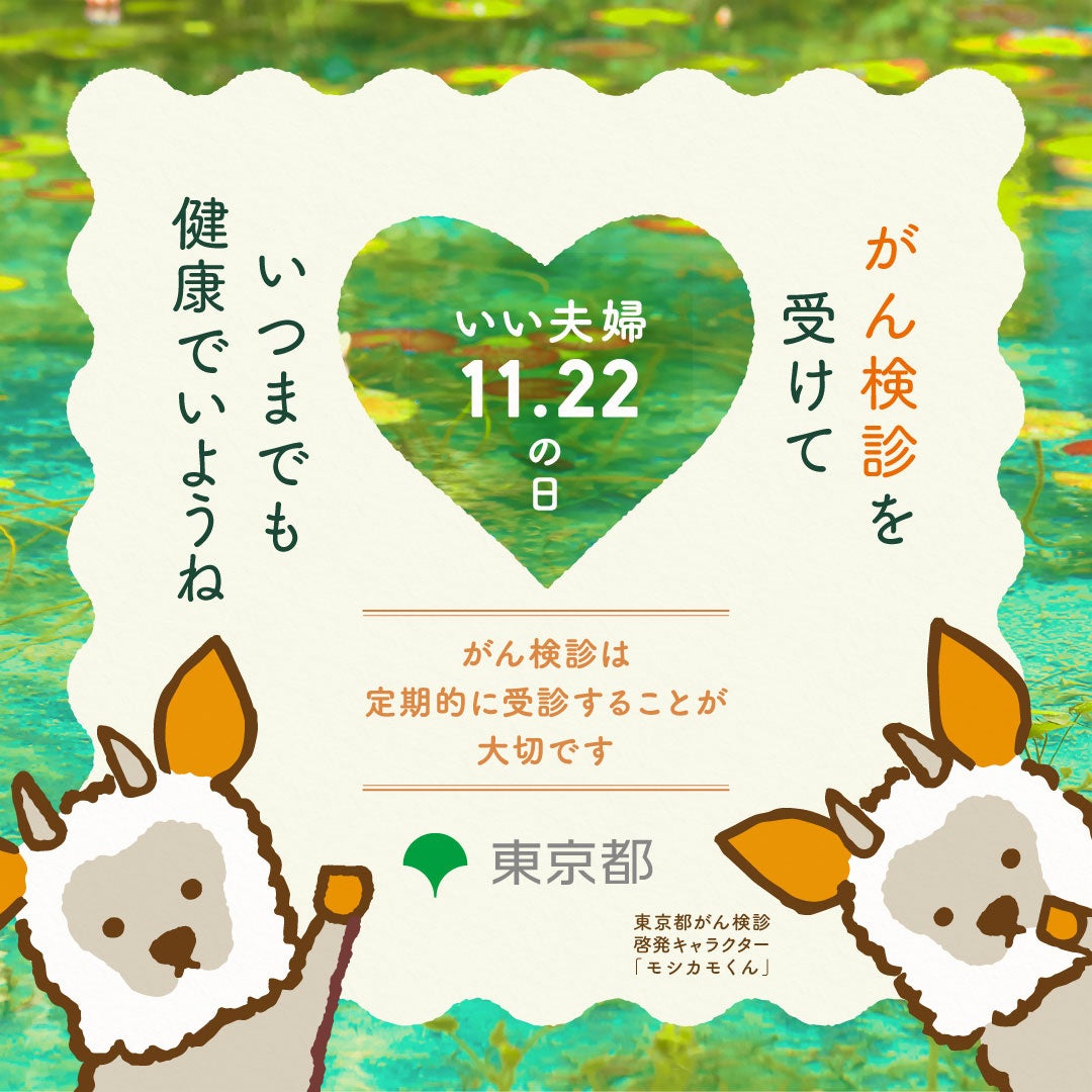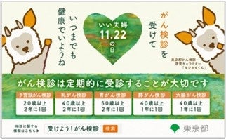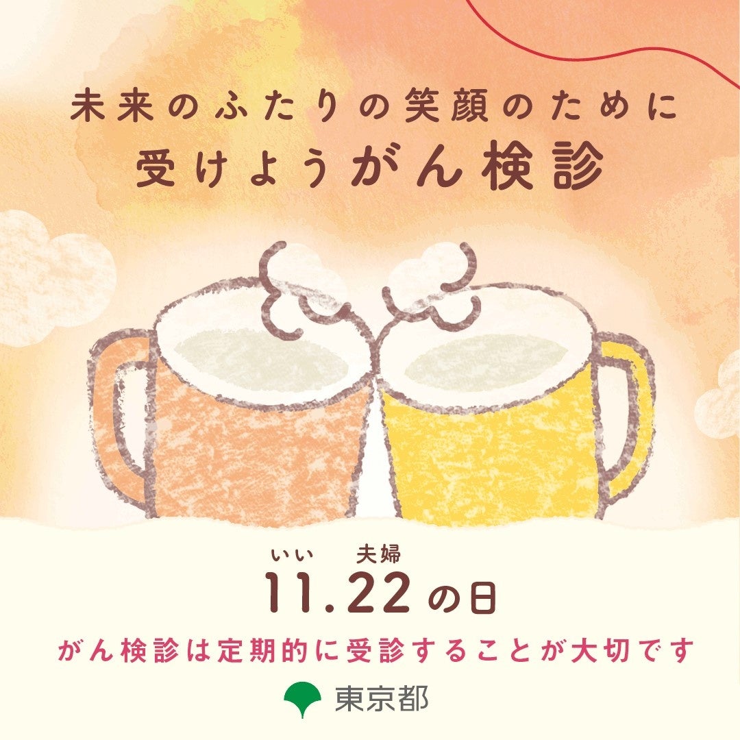 東京都は、がん予防・がん検診受診率向上のため、11月22日のいい夫婦の日にあわせて、がん検診の大切さを伝える「いい夫婦の日キャンペーン」を実施しています。いつまでも元気でいてほしい身近な方にメッセージカードを贈り、がん検診の大切さについて一緒に考えてみませんか。