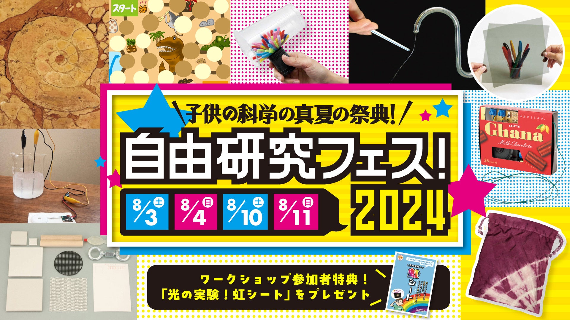 毎年恒例『子供の科学』の夏休みの祭典「自由研究フェス!2024」は、8/3(土)、8/4(日)、8/10(土)、8/11(日・祝)の4日間開催。今年もさまざまな科学体験プログラムをラインナップ。実験や工作を楽しみながら、自由研究のテーマ探しができます。8/3には山村紳一郎先生のオンライン実験ショーもあります。