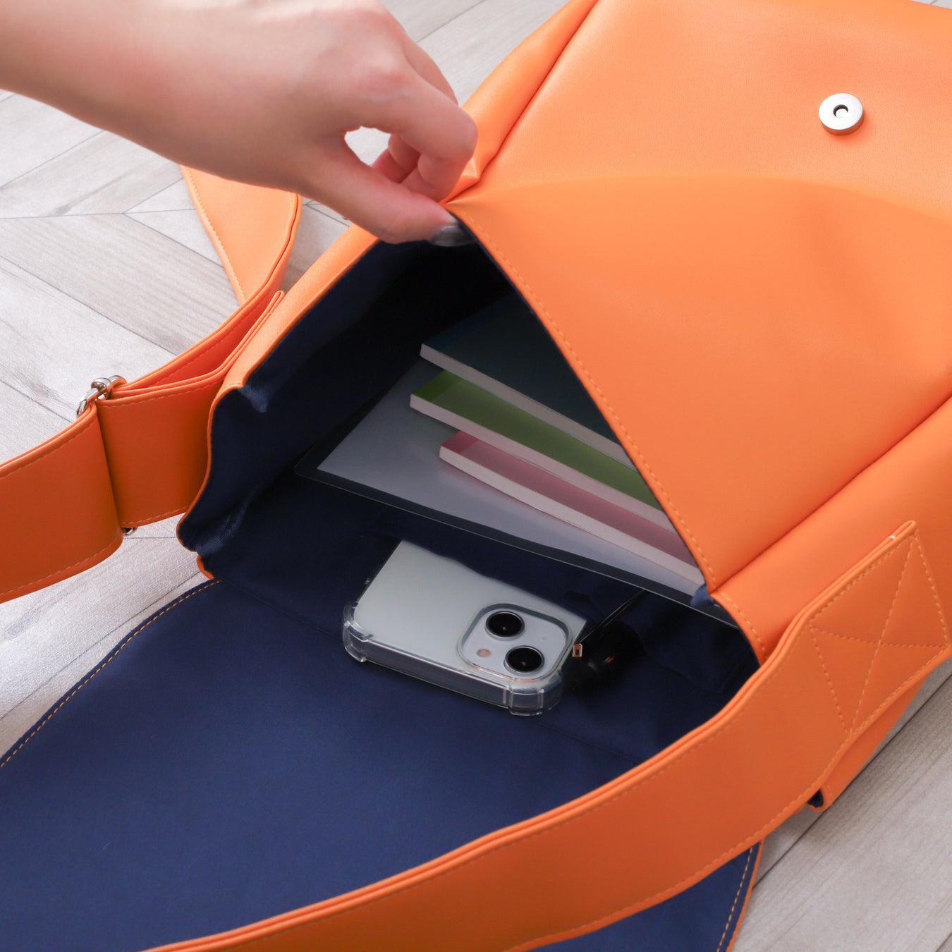 シグのカバンをモチーフにしたバッグ。見た目よりもしっかりと大容量で、A4サイズの書類やタブレットなども収納可能です。内ポケットもあり利便性も高く、快適さもしっかりと兼ね備えた、日常使いにぴったりなアイテムです。
