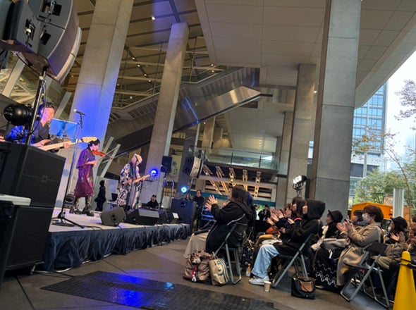 水産業エリアでは、ミスターとうきょう漁業(東京の漁業をPRするリーダー)から水産業を学ぶワークショップが開催されたほか、林業エリアでは丸太切り体験やつみ木ひろばが子どもを中心に大人気でした。キッチンカーエリアでは、ジャズやお笑いを楽しめるステージイベントを初開催し、賑わいました。