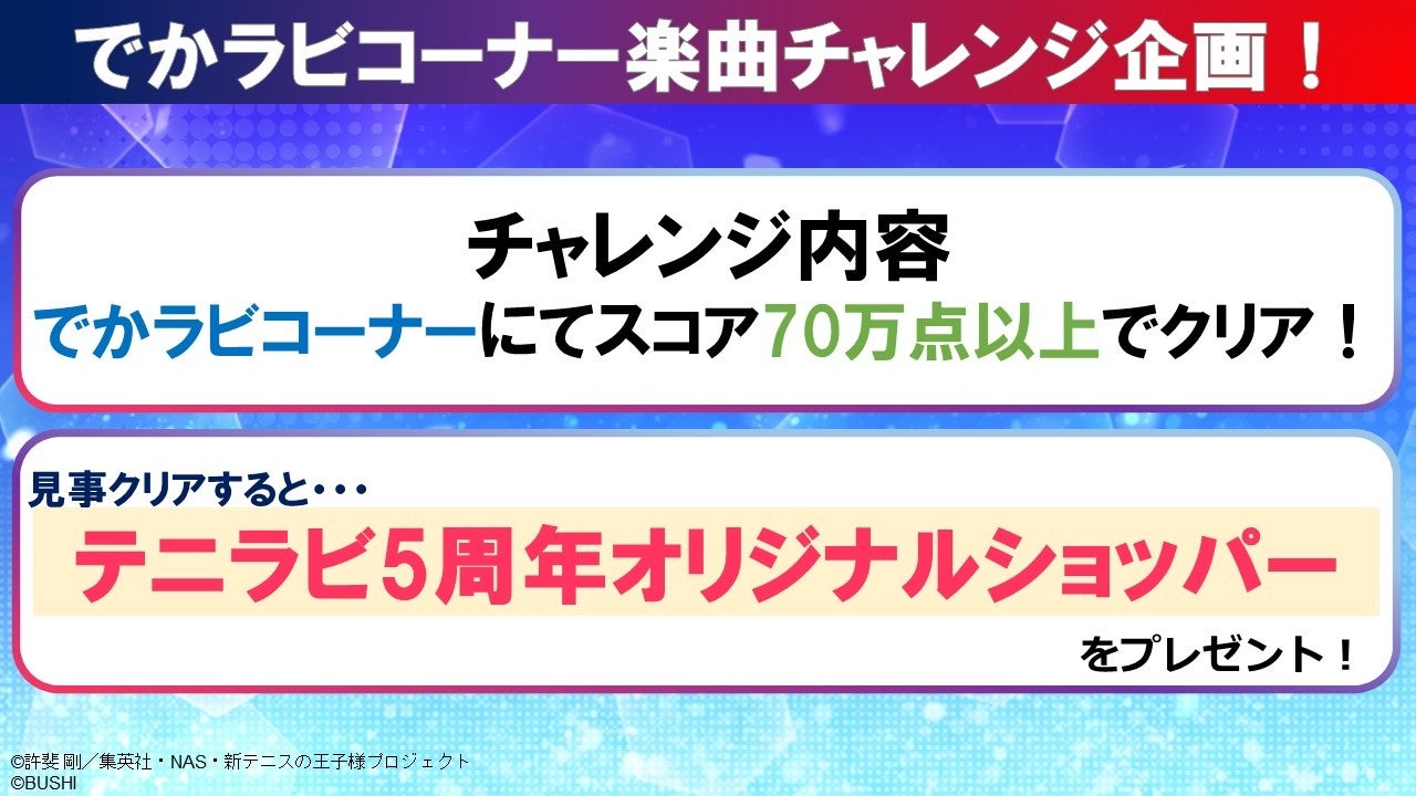 特別チャレンジミッションをクリアした方にテニラビ5周年オリジナルショッパーをプレゼント。