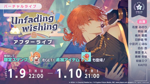 イベント終了後には「バーチャルライブ」でのアフターライブとして、「Unfading wishing アフターライブ」を開催いたします。