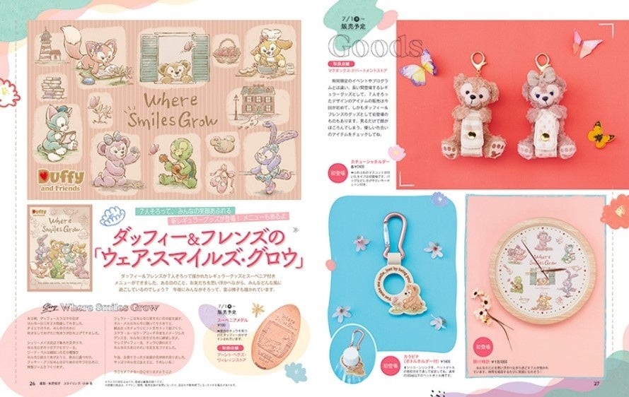 ダッフィー&フレンズが7人そろって描かれたレギュラーグッズとスーベニア付きメニューができました。7人そろって、みんなの笑顔があふれるグッズやメニューを誌面でたっぷりお楽しみください。