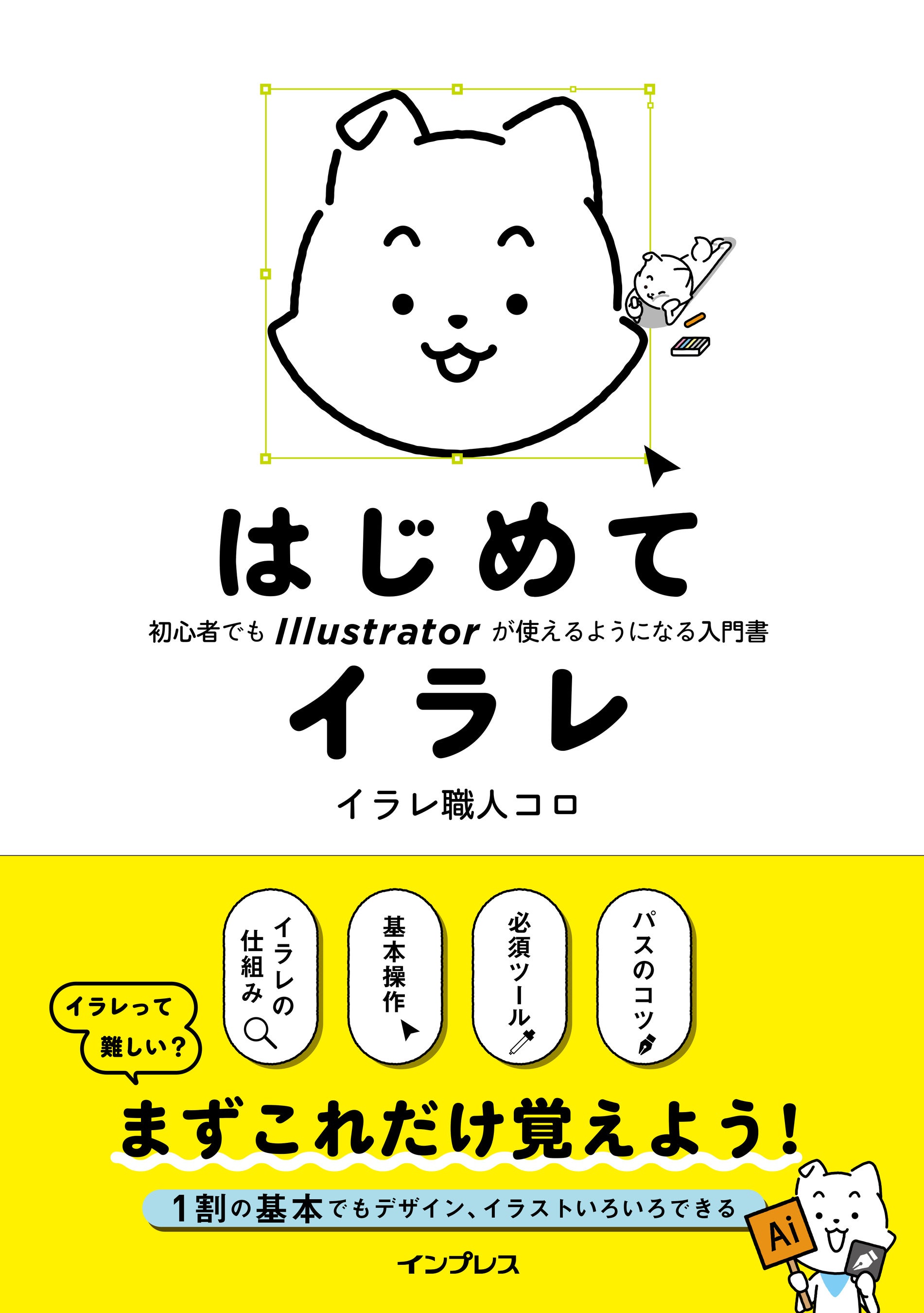 本書は、イラレを触ったことがない人でも挫折せずに、イラレの基本が学べる入門書です。著者はSNSでイラレのチュートリアルを題材にした投稿を行い、初心者からプロクリエイターまで人気を集めるイラレ職人コロ氏です。多くの人にイラレのチュートリアルを発信してきたからこそのやさしい解説で、スッと学習できる1冊になっています。