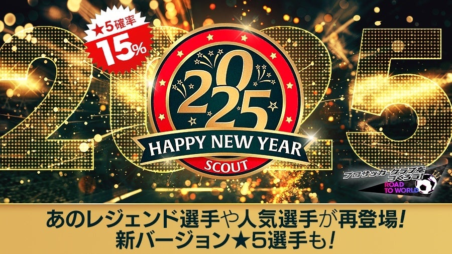 『プロサッカークラブをつくろう! ロード・トゥ・ワールド』「小野伸二」など名選手が登場する“HAPPY NEW YEAR SCOUT”を開催!“三が日限定!お年玉ログインボーナス”も!