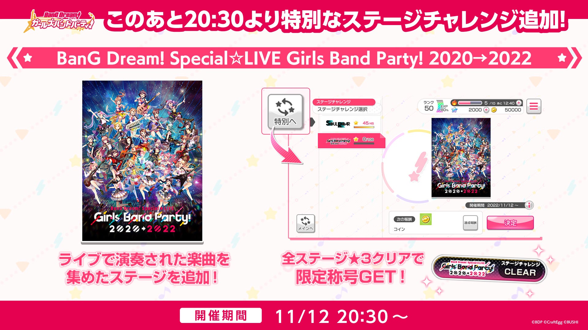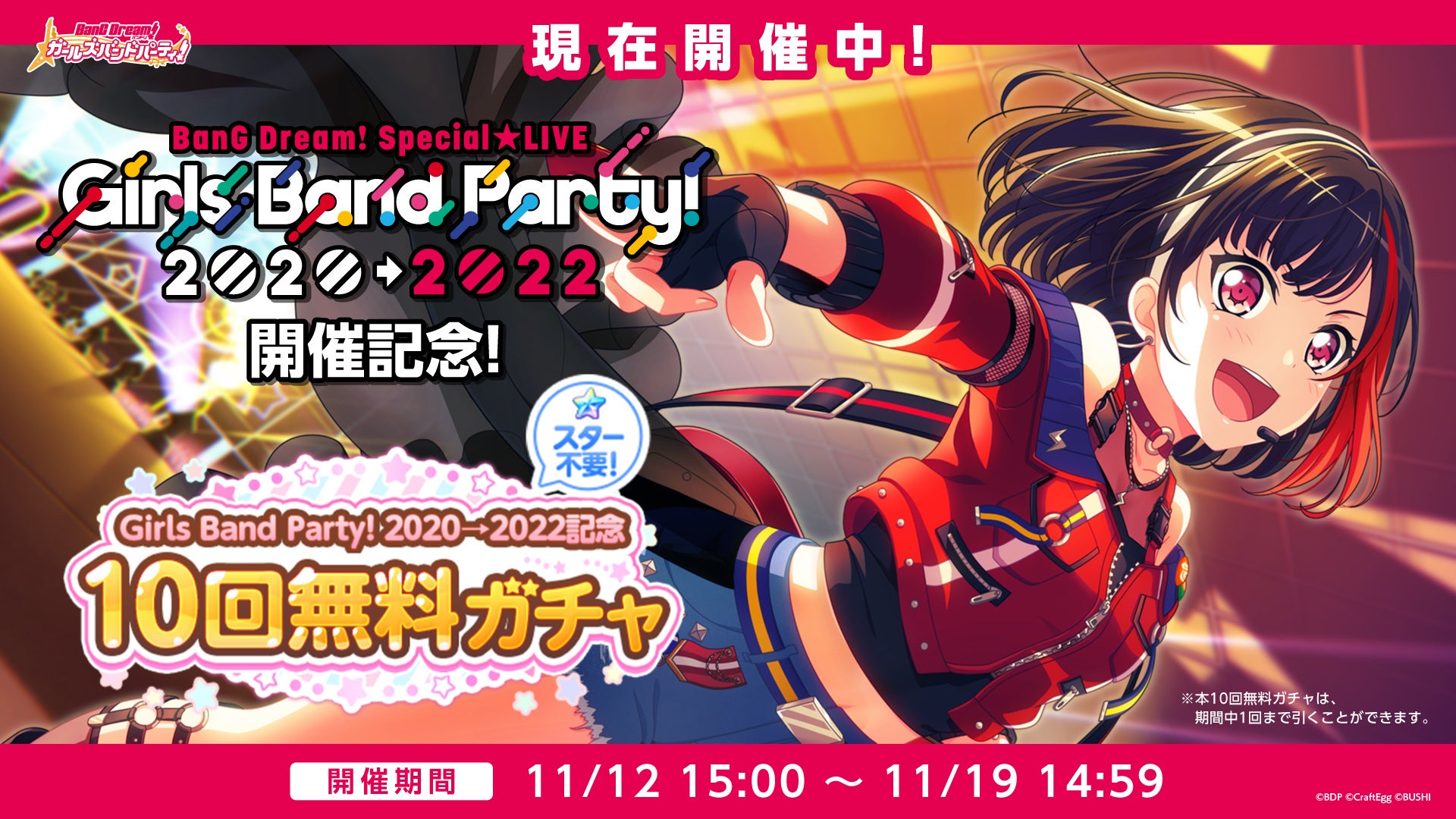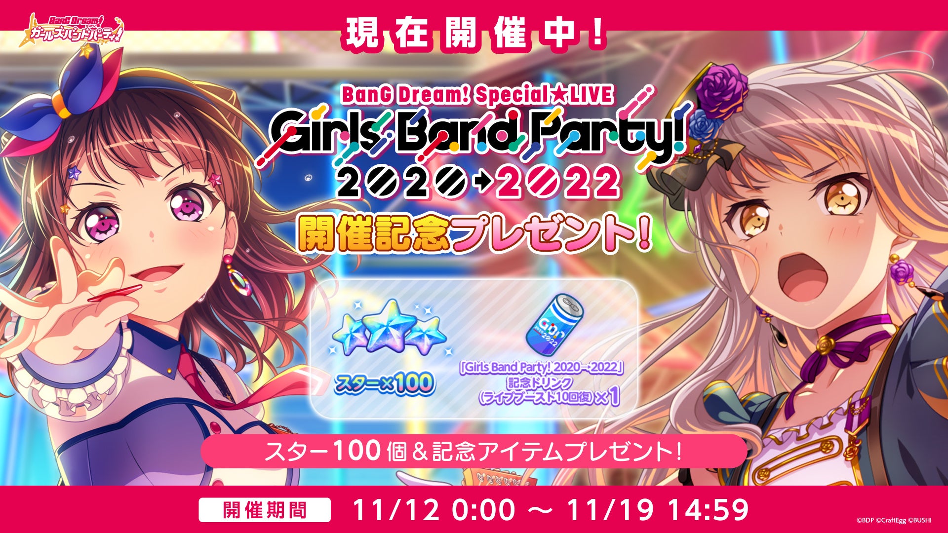 - 「ガルパ」にて「BanG Dream! Special☆LIVE Girls Band Party! 2020→2022」記念キャンペーン開催中!