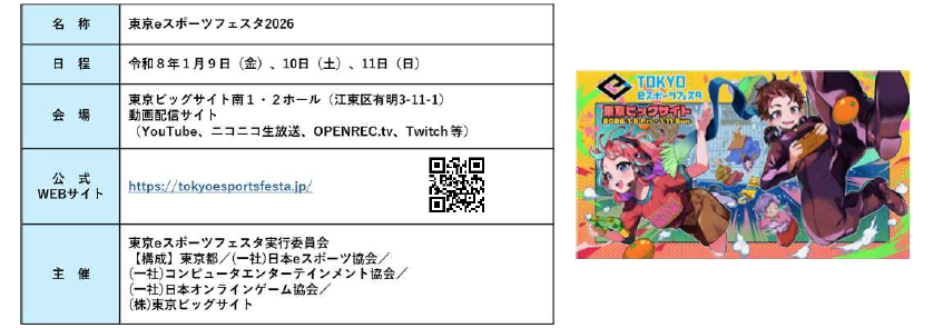 このたび、eスポーツの取組により、障害のある方とない方が対等に競い合える場を提供するため、「東京eスポーツフェスタ2026(R7.1.9~1.11)」のうち、10日(土)のステージイベントとして、「パラeスポーツプレーヤーとのエキシビションマッチ(ストリートファイター6)」を初開催いたします。