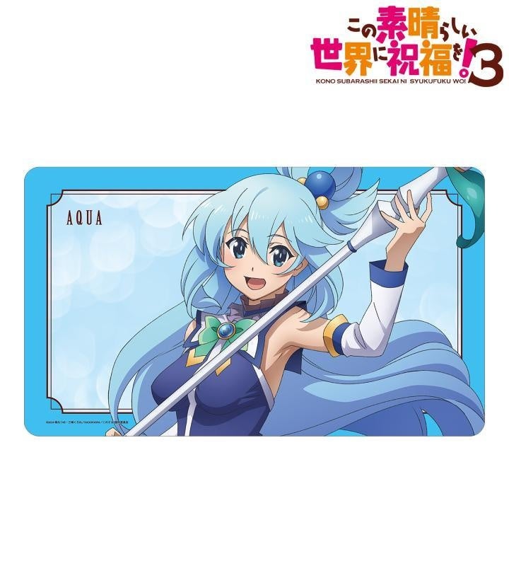 アクア、めぐみん、ダクネスのイラスト、キャラクター名をマルチデスクマットに仕上げました。