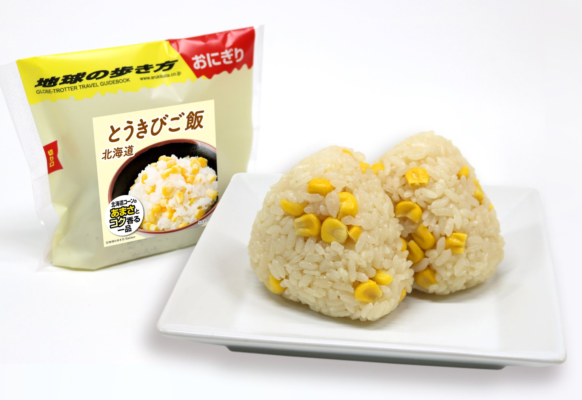 記念すべき第1弾は「北海道とうきびご飯」です。ちょうど、とうきび(=トウモロコシ)がおいしくなる時期に、素材のうまみが広がるとうきびがたっぷり入ったおにぎりが登場! 噛むごとに、あまみとコクが口に広がり、幸せな気分に。『地球の歩き方 北海道』編集担当も太鼓判のおいしさです。