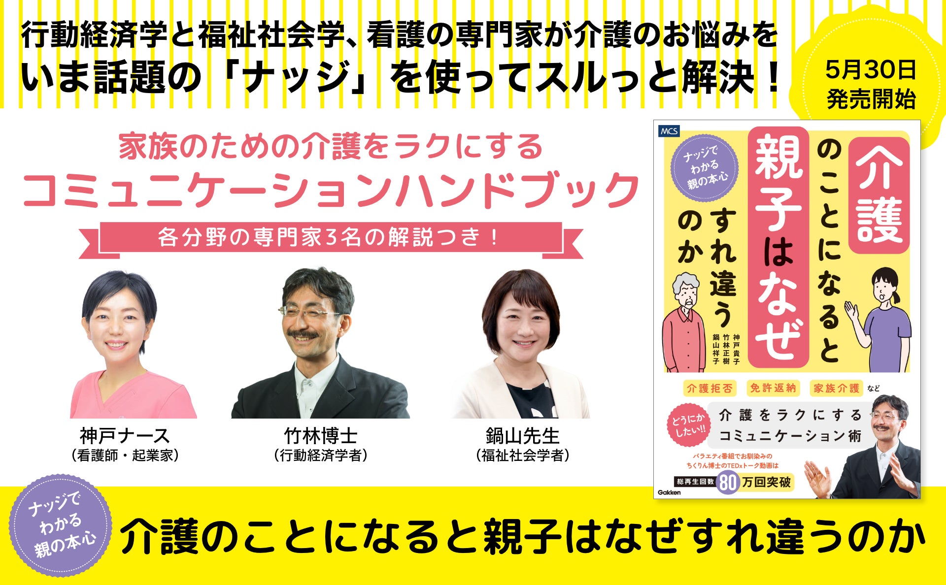 株式会社 学研ホールディングス(東京・品川/代表取締役社長:宮原博昭)のグループ会社、メディカル・ケア・サービス株式会社(埼玉・さいたま市/代表取締役社長:山本教雄)は、2024年5月30日(木)に、『介護のことになると親子はなぜすれ違うのか ナッジでわかる親の本心』を発売いたします。