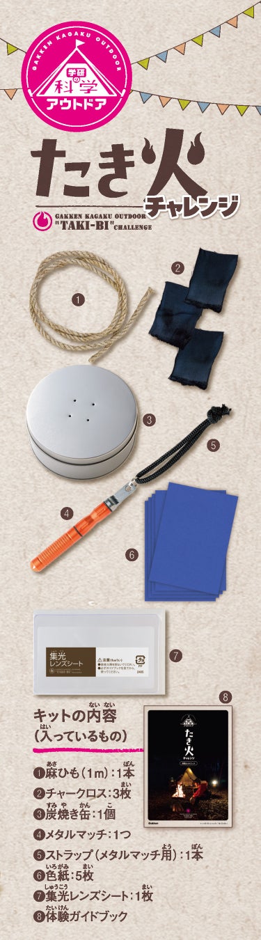 株式会社 学研ホールディングス(東京・品川/代表取締役社長:宮原博昭)のグループ会社、株式会社 Gakken(東京・品川/代表取締役社長:五郎丸 徹)は、2024年5月23日(木)に『学研の科学 アウトドア すぐに使える体験キット たき火チャレンジ』を発売いたしました。