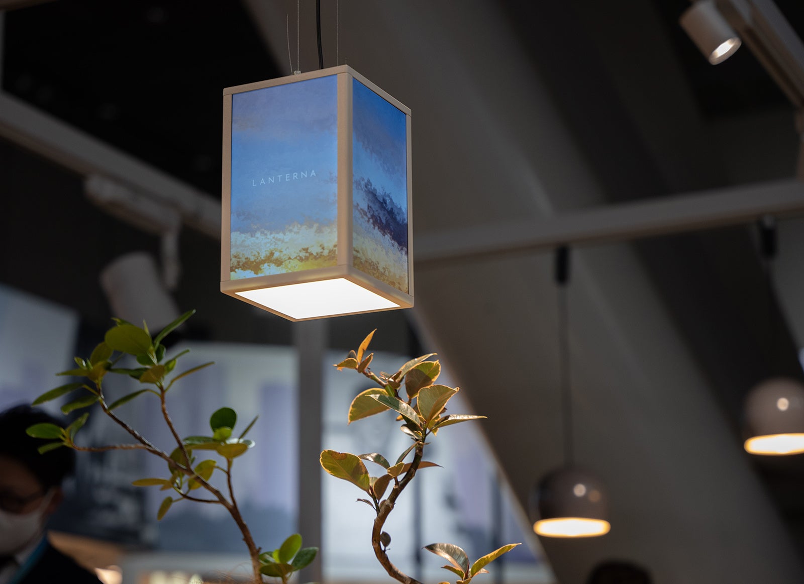 パナソニックは2023年より、照明のランプシェードに映像を流すことでお客様の好みに合わせた自由なデザインを映し出す「LANTERNA(ランターナ)」を販売しており、クラウドサービスを通じて多様なコンテンツを映し出す映像演出機能によって、オフィスや店舗、宿泊施設などにおけるWell-Beingな空間づくりに貢献しています。
