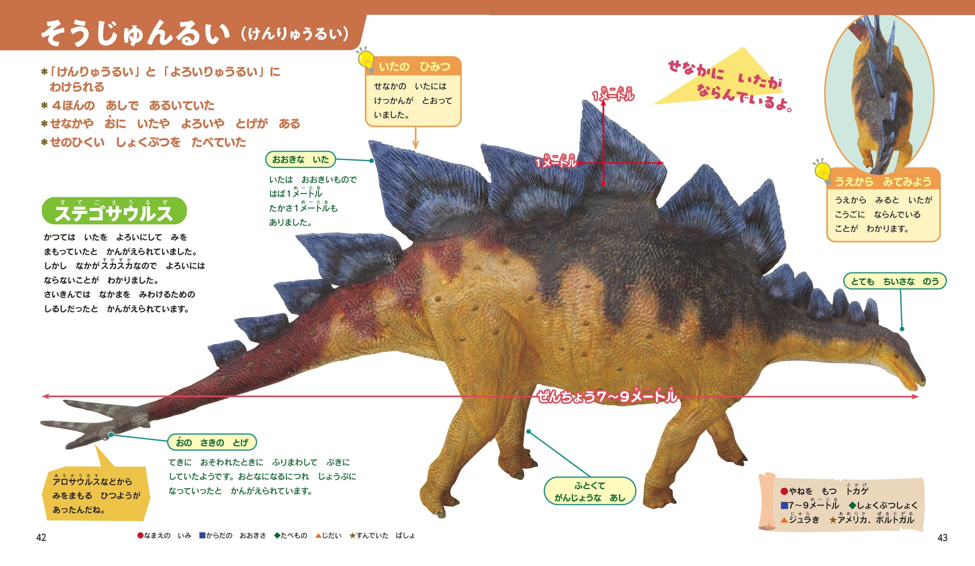 「ひらがな」や「カタカナ」「数字」を読み始めるようになる3~6歳にぴったりの恐竜図鑑です。