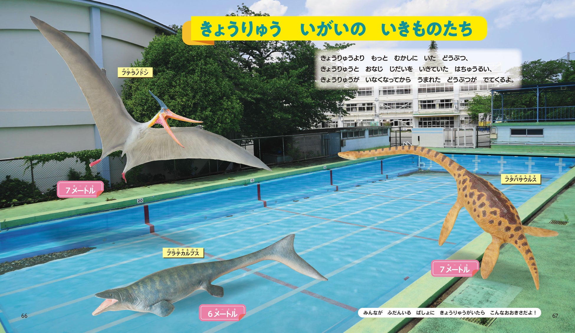 ・恐竜や古生物ごとの特徴がわかりやすいリアルなフィギィア(写真)やイラストを掲載。