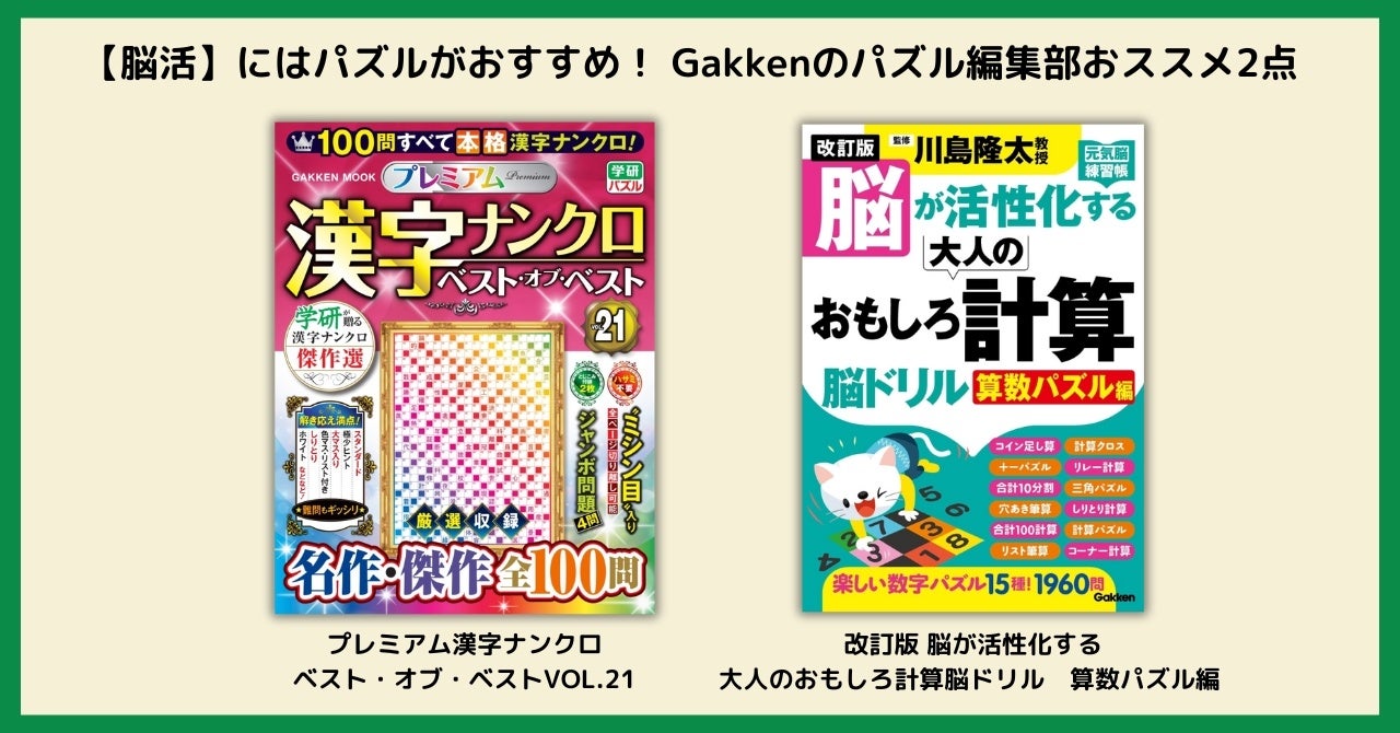 【脳活】脳トレは毎日続けると効果アップ!Gakkenパズル編集部おすすめの「計算脳ドリル」「漢字ナンクロ」2冊発売!