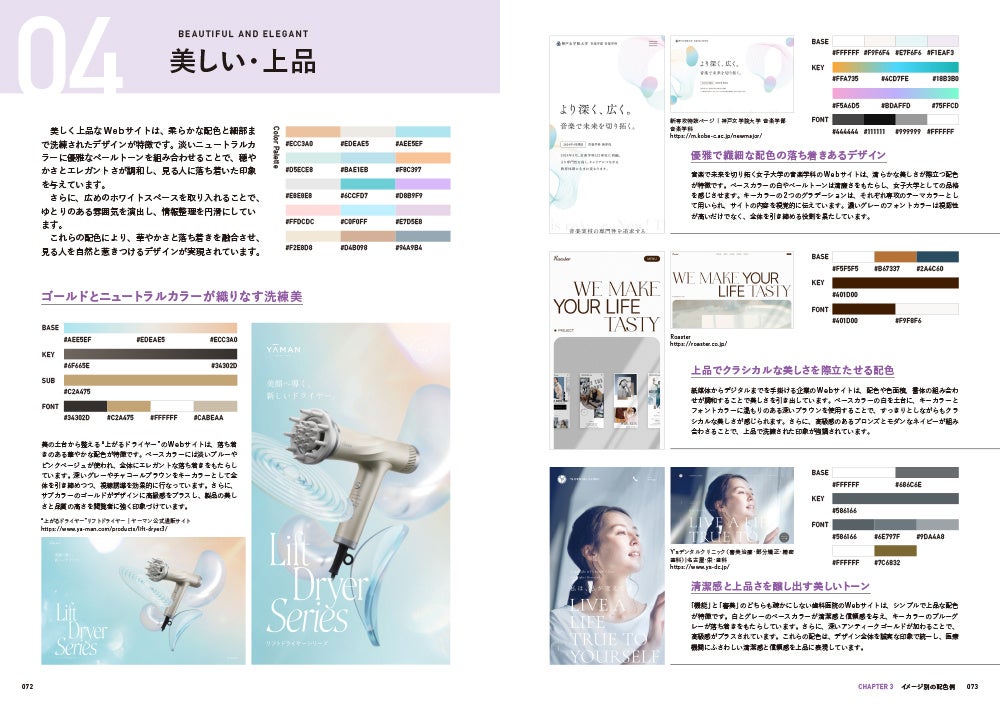 優れたデザインを備えた多彩なWebサイトを、配色の観点から整理し、解説しています。