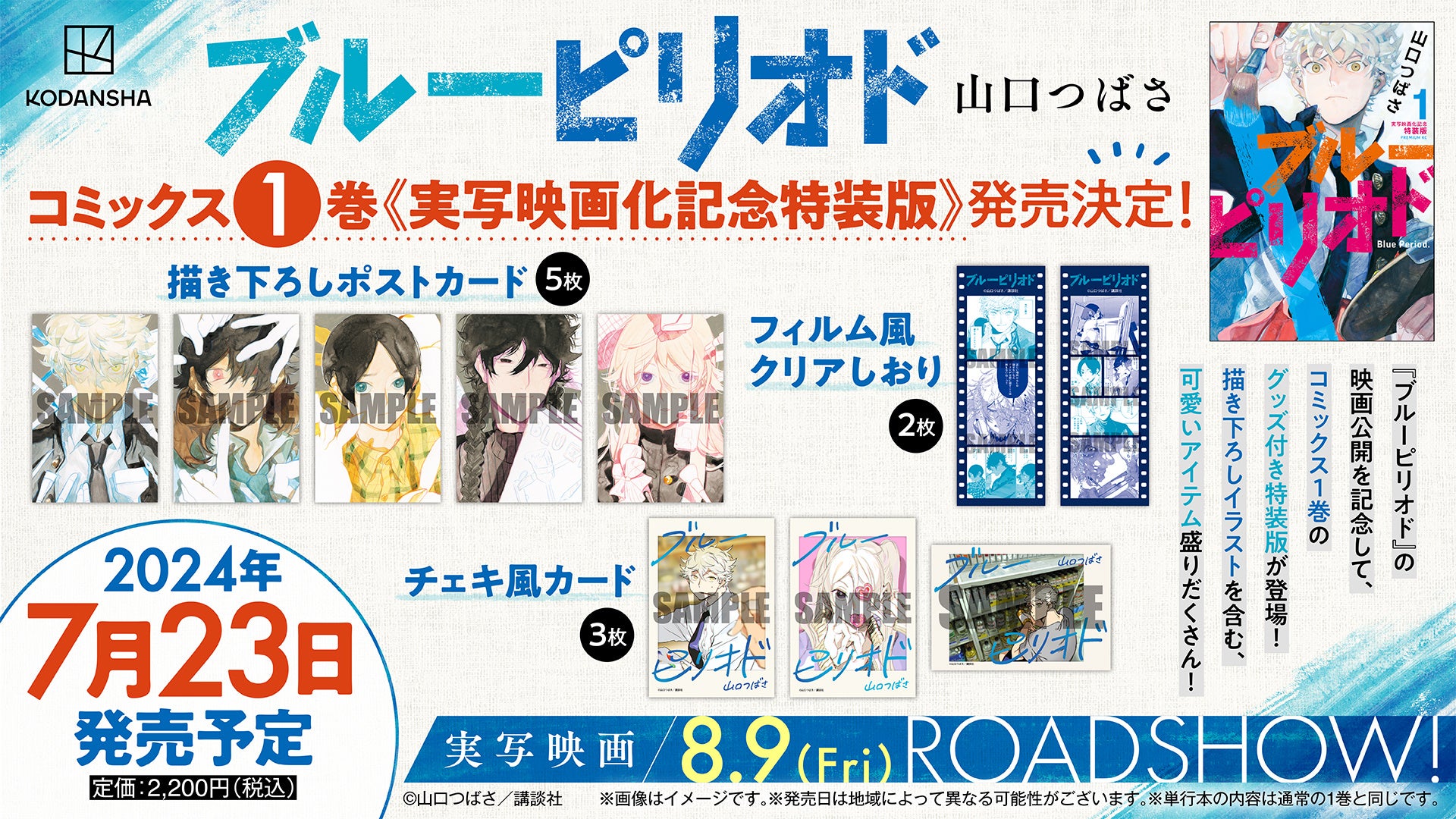 この映画公開を記念し、今回だけの特別なアイテムがついた『ブルーピリオド(1)実写映画化記念特装版』を、7月23日に刊行することが決定いたしました。本日はそのデザインを一挙公開いたします。